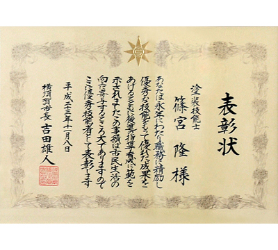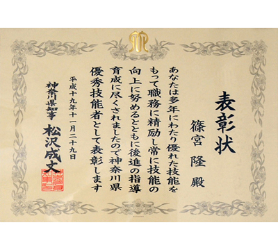 - 神奈川県優秀技能者(平成19年度・・・神奈川県内で3名)