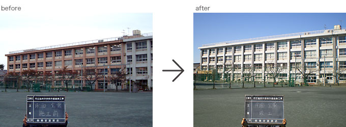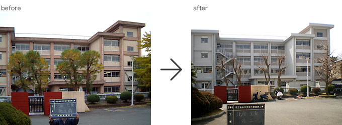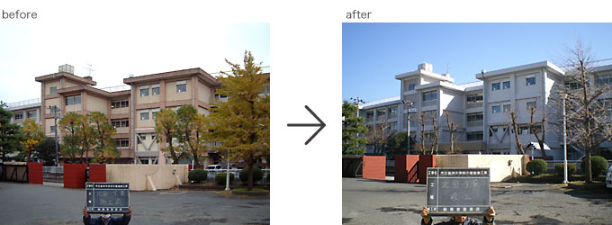 追浜中学校の校舎はA・Bの2棟。今回はそのうち、B棟を施工しました。