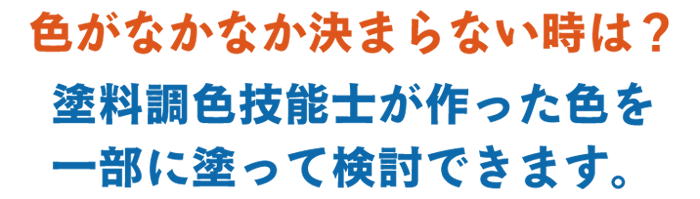 外壁の仕上げは、塗料調色技能士が作った色を壁の一部に塗ってお客様に検討していただく事もできますので「仕上がりの色がイメージしていた物と違う」といったトラブルは避けられます。